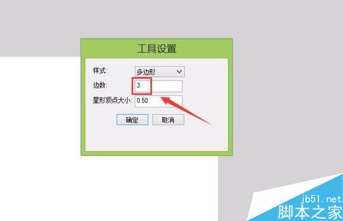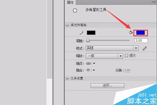 3、點擊多角星形工具,在屬性里點擊選項,彈出工具設置對話框,在工具設置對話框內將邊數設置為3,如圖所示:
