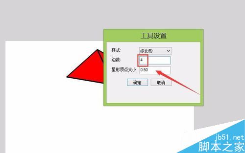 8、再次選擇多角星形,在屬性里點擊選項,彈出工具設置對話框,調節邊數為4,如圖所示: