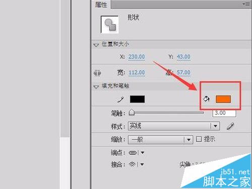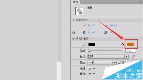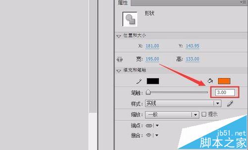 4、選擇這個橢圓,在屬性里設置筆觸大小為3,如圖所示: