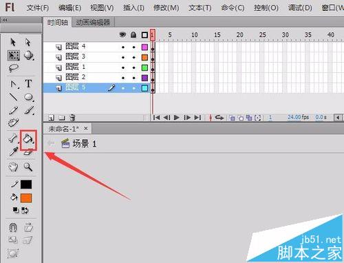12、在工具箱里找到油漆桶工具,如圖所示: