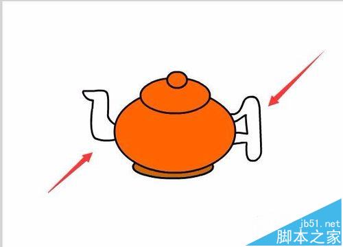 14、顏色設置完成后,用鼠標左鍵在茶壺嘴和茶壺把手上面點擊鼠標左鍵填充上我們需要的顏色,我們的茶壺就制作完成了,如圖所示:
