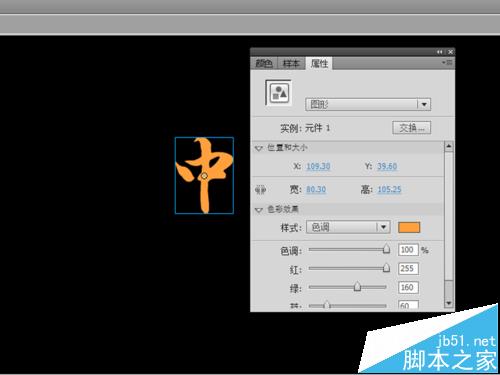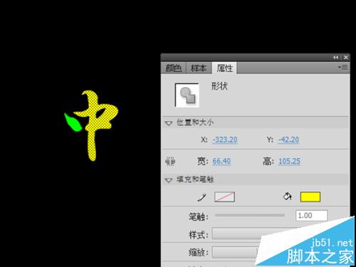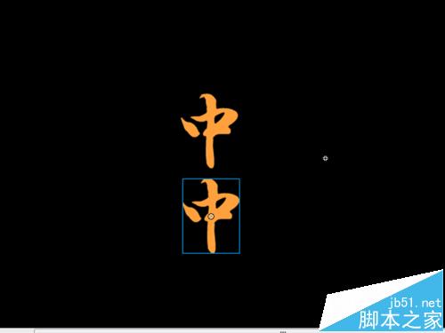 3、選擇“中”字,執(zhí)行ctrl+b將文字進行打散,將文字填充為黃色,并調整其位置。