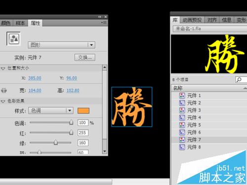 5、重復步驟3、4步,依次創(chuàng)建圖形元件3、影片剪輯元件4,直到圖形元件7和影片剪輯元件8。