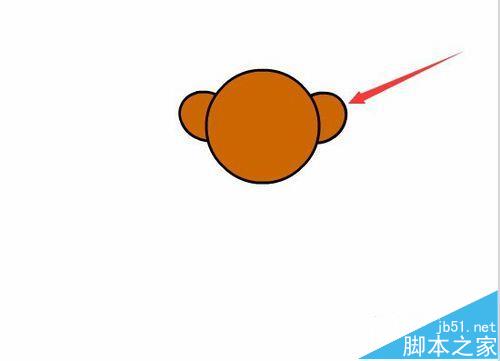 5、在頭部上繪制兩個小的橢圓并調節其旋轉角度和位置,作為猴子的耳朵,如圖所示: