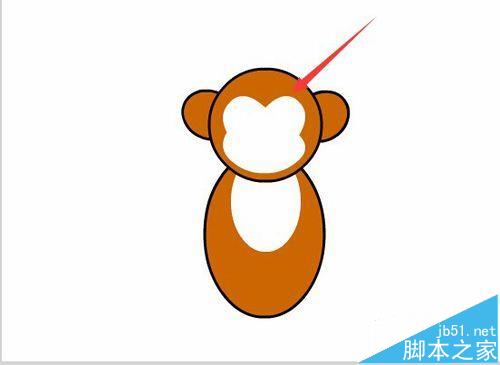 8、在猴子的頭部繪制一個橢圓,并調節其形狀,作為猴子的面部,如圖所示: