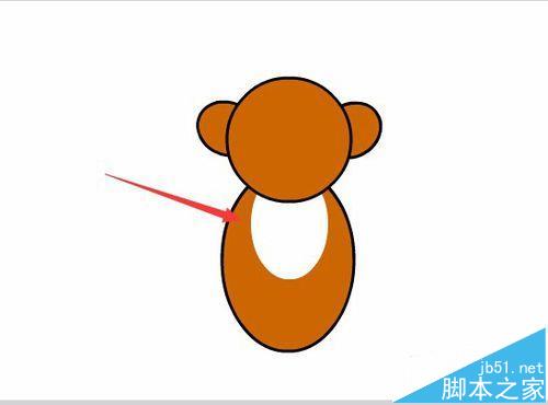 7、在屬性里調節填充色為白色,取消筆觸的使用,在身體上繪制一個白色的橢圓作為猴子的肚子,如圖所示: