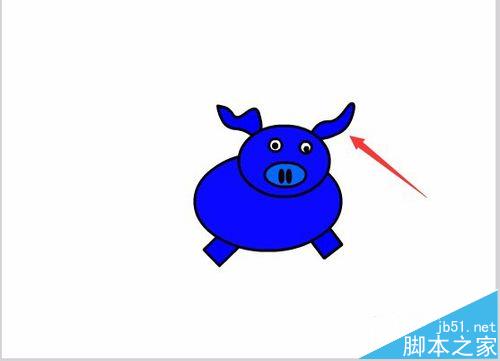 11、在工具箱內選擇繪畫筆工具,用繪畫筆工具繪制一條曲線作為小豬的尾巴,一個可愛的小豬就制作完成了,如圖所示: