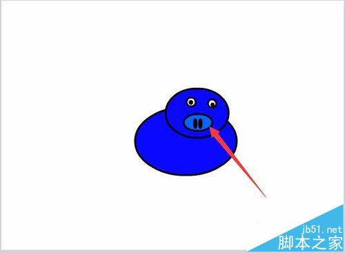 6、再在屬性里調節填充顏色為淺藍色,并在小豬的頭部上繪制一個橢圓,作為小豬的鼻子,如圖所示: