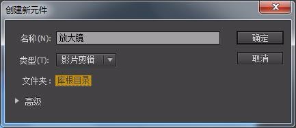 三、新建圖層三,在圖層三里創(chuàng)建一個影片剪輯元件,命名為放大鏡。點擊確定,進入元件編輯舞臺。
