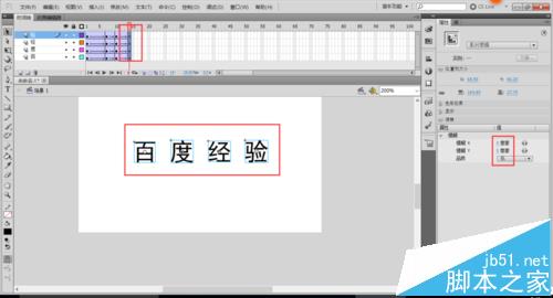 7、將圖層上的幀錯開位置。調整文字出現的先后順序。導出測試,在此基礎上可設置多種文字動畫效果。