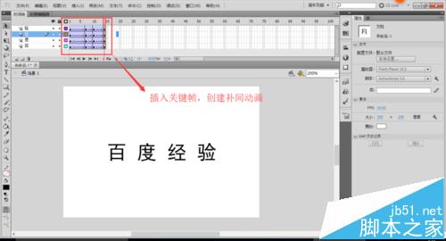 2、分別在7、10、14插入關鍵幀。創建補間動畫。