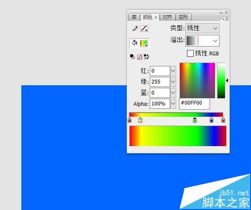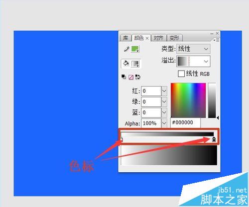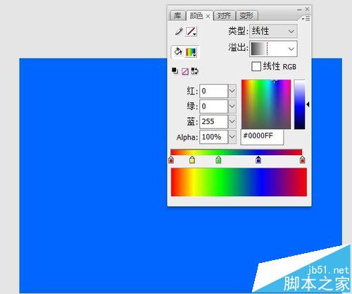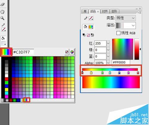 7、填充條上單擊,可以添加色標(biāo)。如flash中預(yù)置的彩虹漸變,由七個(gè)色標(biāo)組成。