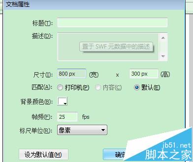 1、打開FLASH軟件,新建FLASH文檔;修改文檔屬性;
