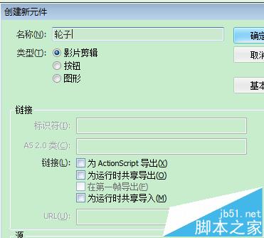 4、CTRL+F8新建一個影片剪輯元件;命名為輪子;