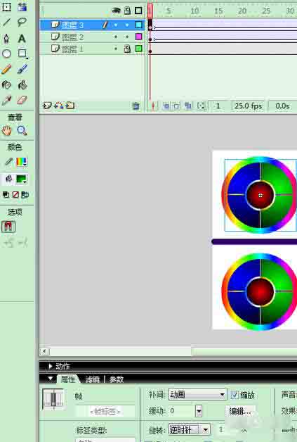 用FLASH軟件,制作鏡像動畫,用到補間動畫,等命令。