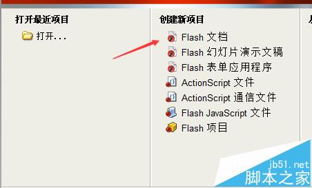 1、打開FLASH軟件,新建FLASH文檔;