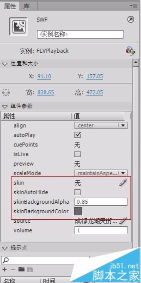 7、如果不成功,組件會(huì)不顯示內(nèi)容。這時(shí)就需要對(duì)視頻進(jìn)行轉(zhuǎn)換,因?yàn)榻M件播放僅支持為數(shù)不多的編碼格式。接下來設(shè)置播放器的皮膚和控制功能。