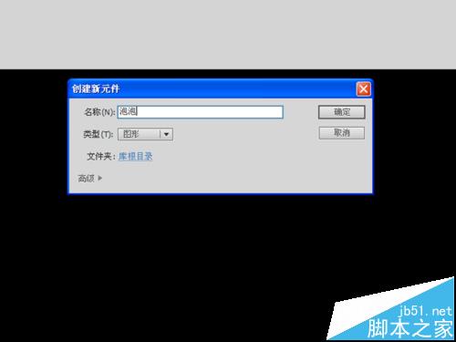 2、執行插入-新建元件命令,新建一個名稱為“泡泡”的圖形元件,然后點擊確定按鈕進入編輯區域。