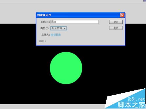6、執行插入-新建元件命令,新建一個名稱為“運動”的影片剪輯元件,單擊確定后進入編輯區域。