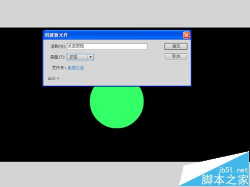 4、執行插入-新建元件命令,新建一個名稱為“點擊按鈕”的按鈕元件,點擊確定按鈕后進入編輯區域。