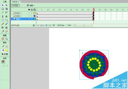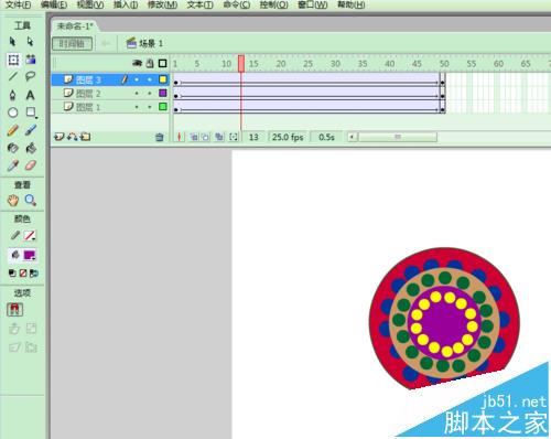 用FLASH軟件模擬旋轉盤子的各自旋轉,用到補間動畫。