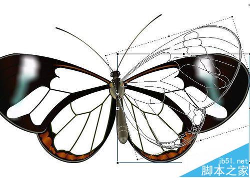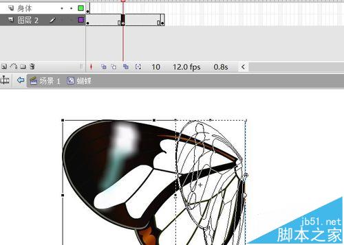 10、回到右翅層,旋轉、移動到合適位置。完成扇動翅膀的蝴蝶制作。