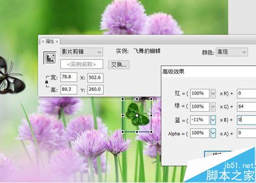 7、場景中,新建一層,拖入多個飛行的蝴蝶。更改顏色、大小等,這一步看個人喜好。完成制作。