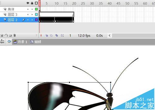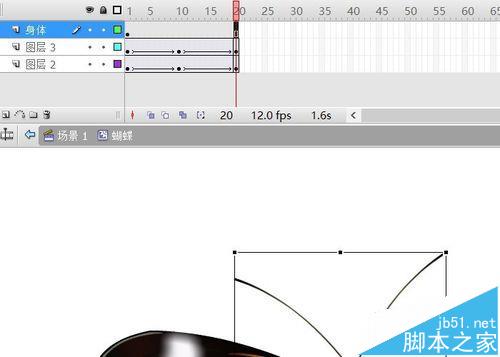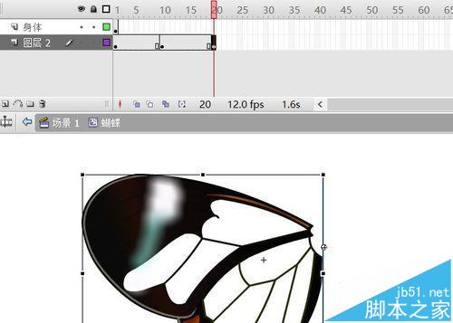 4、翅膀層10、20幀,F6插入關鍵幀。