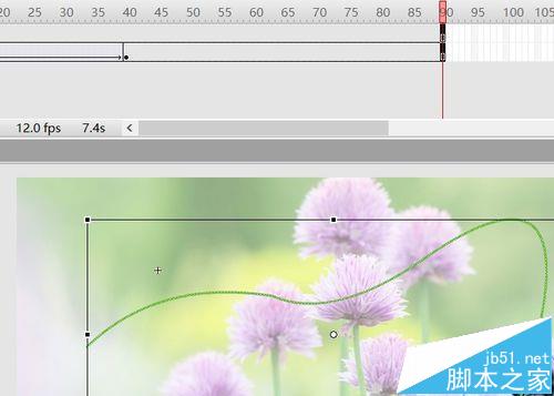 6、回到幀1,創建補間動畫,40幀寫上stop();或者延后50插入幀,使蝴蝶在花兒上停留一段時間。