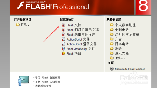 1、打開FLASH軟件,新建FLASH文檔;