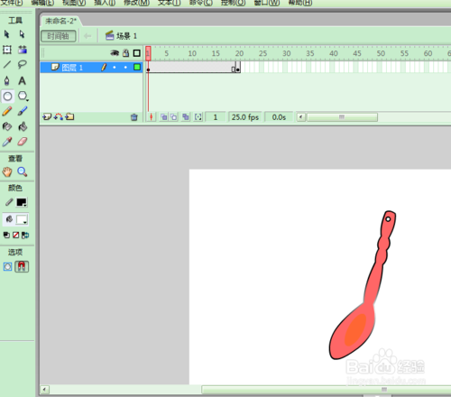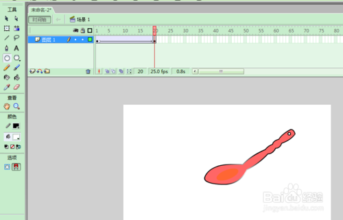 用FLASH模擬湯勺的動作,先繪制處湯勺,然后添加補間動畫。