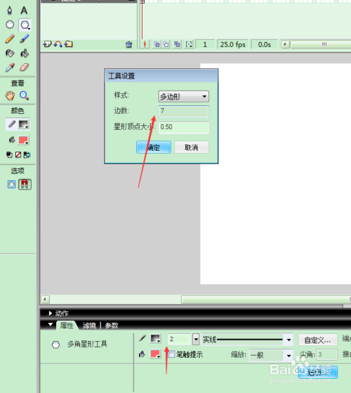 2、選擇多邊形工具,筆觸與填充設(shè)置如圖;