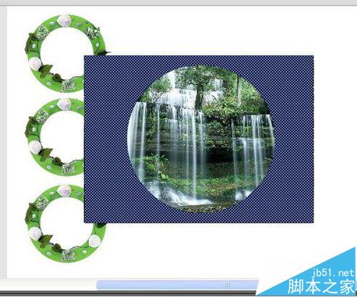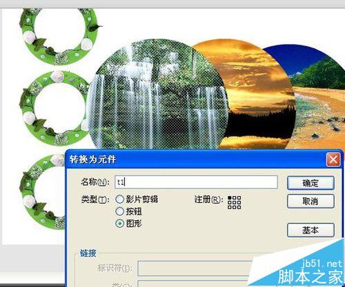 2、將預先準備好的圖片導入。這個圖片是在PS中按相框內圓的大小制作的PNG圖片。沒有預先做好的話,可以在flash中分離,然后用方框結合橢圓做出一個中空的方框,然后利用這個中空的方框粘貼到分離后的圖片上再刪除的方法去除圖片多余的部分。比起在PS中要麻煩些。這里做一個大致的圖看一下。