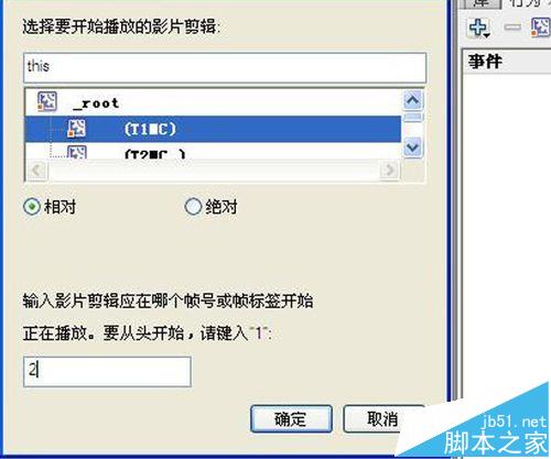 12、選擇影片剪輯選T1MC,播放的幀數鍵入2。