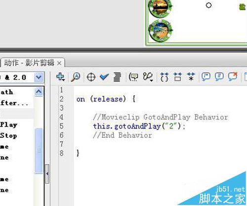 14、單擊該MC,在動作面板中我們可以看到相應的動作腳本。