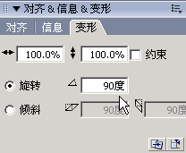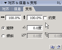 精確的變形要在變形面板中完成,可以用數字來確定,方法是,先選擇一個對象,再使用“窗口”菜單中的“變形”面板(Ctrl+T),這時右邊會出來一個變形面板: