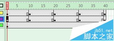 4、在第10、20、30、40幀處添加關(guān)鍵幀;