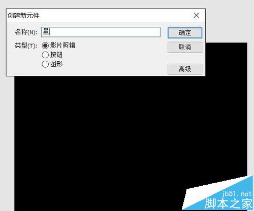1、我們先制作一個(gè)星的元件。Ctrl+F8新建元件,取名星。
