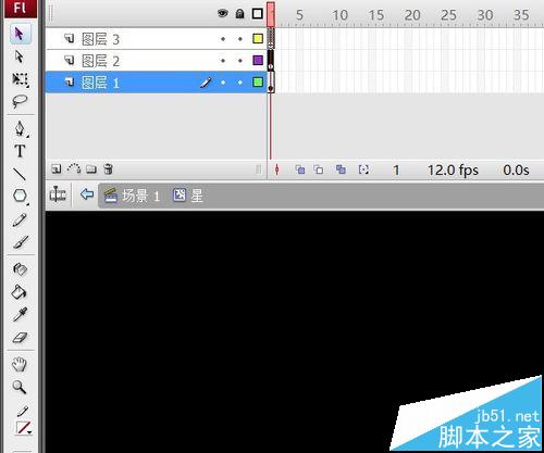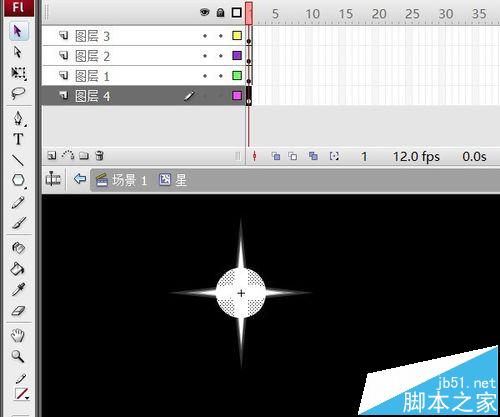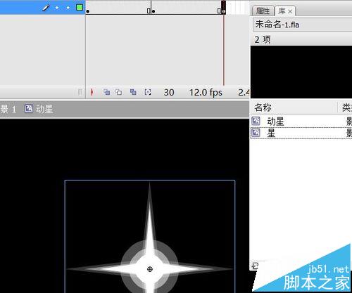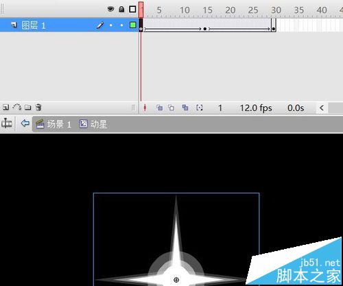 2、雙擊進(jìn)入編輯,從庫中拖入星元件。分別在15、30幀添加關(guān)鍵幀。