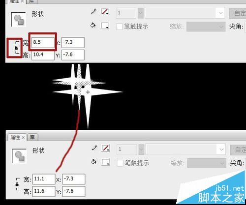 4、選中層3的星,屬性面板中鎖定寬高,將寬改小后回車,高也會(huì)相應(yīng)改小。最終要達(dá)到一層比一層小一圈的結(jié)果。