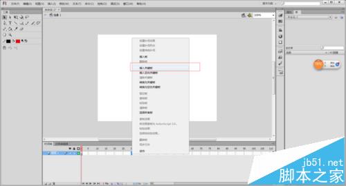 1)可在時(shí)間軸中30幀處按鼠標(biāo)右鍵,選擇插入空白關(guān)鍵幀,