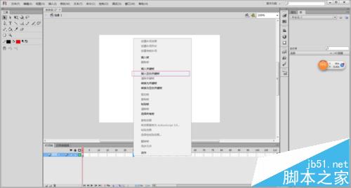 1)可在時(shí)間軸中30幀處按鼠標(biāo)右鍵,選擇插入關(guān)鍵幀幀,