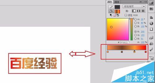 4、做漸變一定要文字打散,鼠標點中“百度經驗”,CTRL+B打散字體,