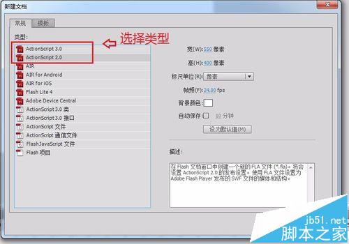 2、選擇打開類型,是AS3.0還是AS2.0的,兩者在寫代碼上有區別,用不到代碼選哪個都可以的。