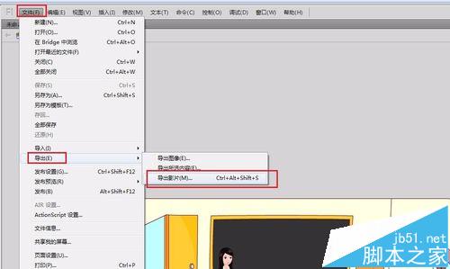 6、文件---導出---導出影片,選擇導出SWF格式的文件,然后在單獨播放即可。