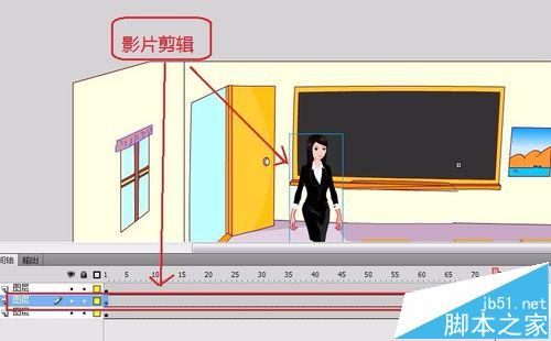 3、怎么預覽動畫的完整效果呢?直接按“回車”,播放不了,為什么有的源文件里面直接按“回車”能播放呢,因為那個是逐幀動畫,時間軸上沒有影片剪輯,動畫是逐幀顯示。