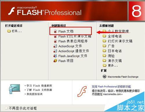 2、選擇新建一個(gè)flash文檔,如下圖所示: