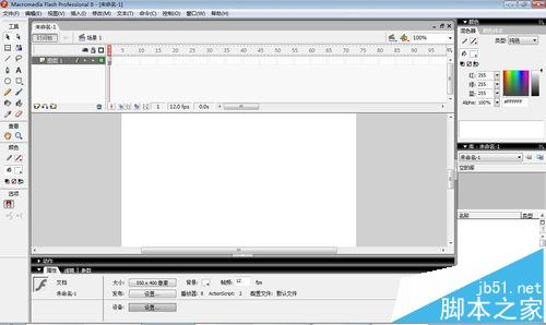 3、下圖所示是flash的工作區(qū)域,對(duì)于各個(gè)區(qū)域的名稱,我會(huì)在后續(xù)課程中進(jìn)行講解。