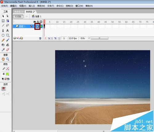 3、選擇素材按ctrl+b組合鍵將圖片打散,并將圖層1鎖定。