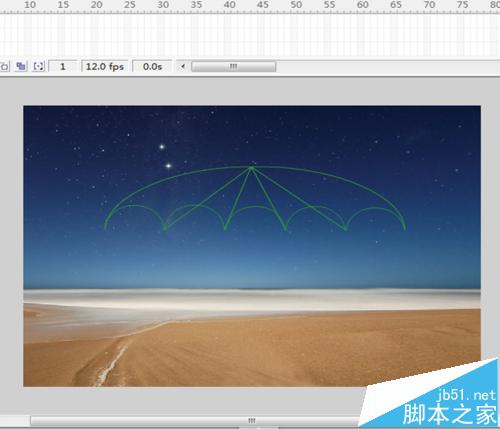 10、選中圖層3,選擇工具箱里的線條工具,設置屬性面板中筆觸高度為4,在場景中繪制兩條直線。